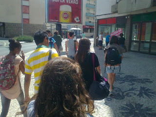 Depois de três horas de viagem e um almoço oferecido pela RTP num restaurante da zona, o pessoal começou a tentar meter a cabeça no DANCE MODE e tirá-lo do I WANT TO TAKE A NAP MODE xD E pensávamos ter ainda uma hora e meia para o fazer, visto que só filmávamos ás 15:15 e ainda tinhamos de ensaiar, maquilhar, vestir e pentear. Qual não é o nosso espanto quando depois de apenas vestirmos partes da endomentária a usar e as raparigas apanharem o cabelo bem maltrapilhas da vida, chegamos ao local de gravação e nos dizem "Têm 10 minutos para ensaiar, gravamos logo de seguida". Ora, escusado será dizer que o senhor coreógrafo, como italiano de gema que é, começou "a mandar pragas e postas de pescada para o ar"e a ofender a produção e nós, todos despenteados, sem maquilhagem e com apenas metade da roupa vestida, a stressar. . Ainda por cima a música estava a "encravar" e a saltar partes.