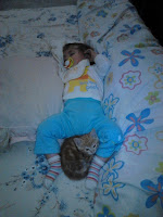 Quem também gosta muito de lhe tentar dar uns valentes apertos é a bebé Leonor, não sei se por achar engraçado uma bolinha de pelo mais pequena do que ela saltitar e miar, ou se por achar que lhe está a roubar o protagonismo nesta coisa de ser a "gracinha pequena" lá do sítio. Seja como for, o Fred acha que ela dá uma bela companhia na sesta.