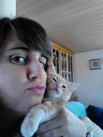 Como chegou na altura em que o João estava de férias, tem lidado com a minha presença como se fosse da casa. E eu que nunca fui muito dada a felinos, fiquei rendida quando entrei lá em casa e vi uma amostra de gato (sim... amostra xD) com um guizo ao pescoço a vir a medo espreitar à porta da sala para ver quem mais entrava naquela casa no dia em que lá chegou. Foi amor à primeira vista, e nessa noite o João pensou mesmo que iria dormir no chão e ser trocado pelo Fred, já que adormecemos os dois na cama dele ao som do seu "rom-rom" xD Agora sempre que lá entro em casa procuro instantaneamente o som do seu guizo, para o encontrar e estrafegar com mimos até ele achar "vá, já tas a abusar" e prender as mini unhacas à minha mão ou morder o meu queixo.