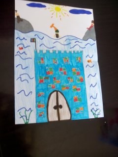 "Olá Professora! Isto é para si! Gosta de sereias, não é? Então... SURPRESA! Fomos nós que fizémos, vê? Diz aqui atrás da folha 'Joana e Ana Rita para a professora Joana de Hip Hop'!"