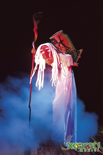 - E por fim (para nós, porque ainda havia algumas coisas para ver e experimentar, mas infelizmente um dia não chega para o Parque Xcaret), um Anfiteatro ENORME, ao ar livre (ainda que resguardado), no meio da selva, onde se pode assistir ao maravilhoso espetáculo musical que conta a história do méxico desde os tempos tribais até ao dia de hoje. Muitos cantores, muitos figurantes, muitos bailarinos, muita musica e muita cor. O ideal para terminar o dia (aliás... a noite) em beleza.