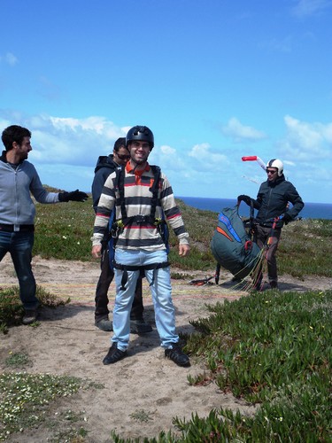 Os senhores da organização eram de uma enorme simpatia, e o meu "guia" era um porreiro, tinha uma voz que transmitia imensa calma e segurança, o que me ajudou a posicionar para tirar os pés de cima da falésia e deixar-me levar pelo vento.